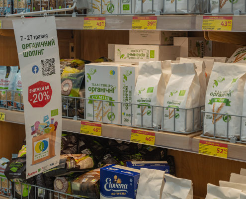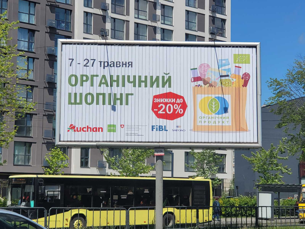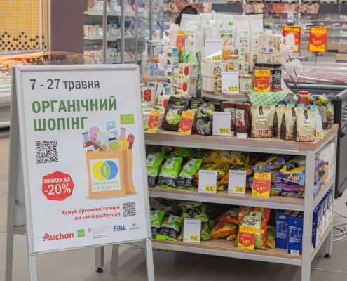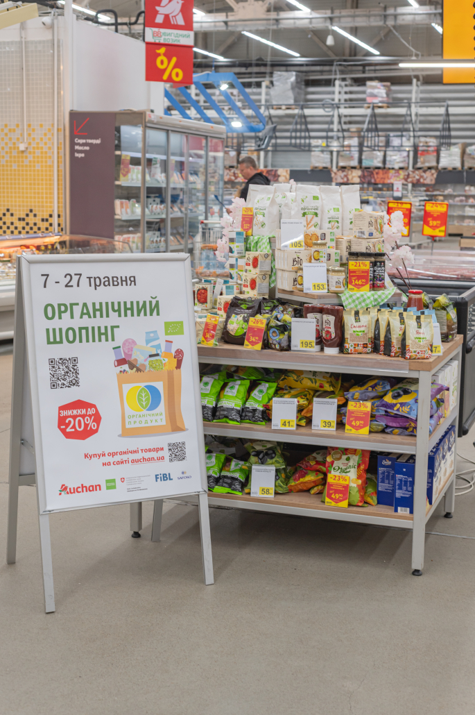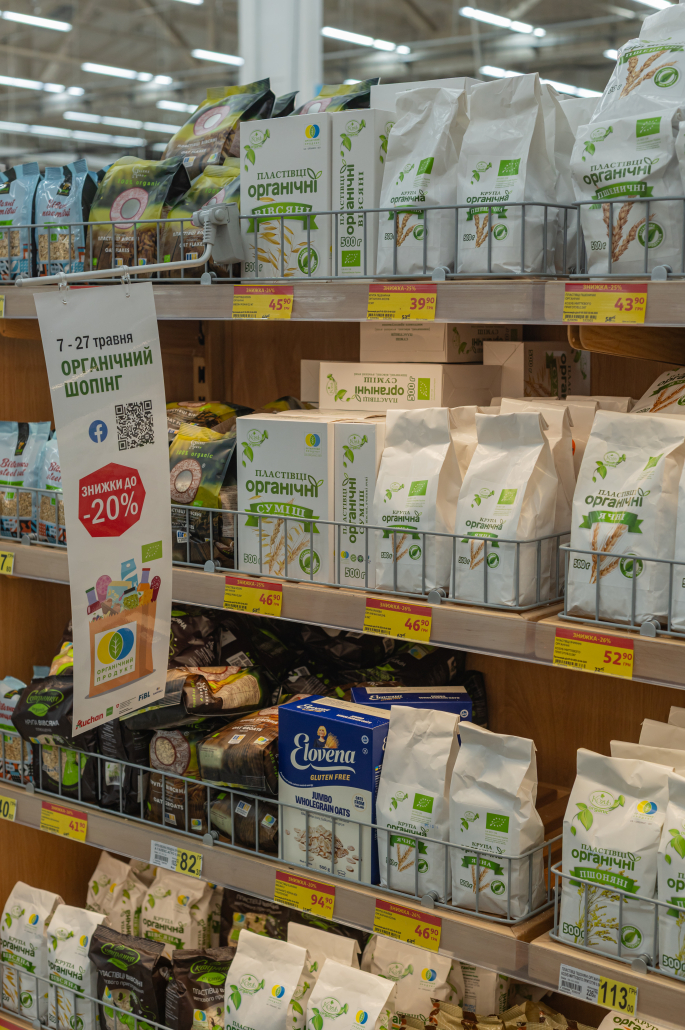 З 7 до 27 травня 2025 р. у магазинах мережі Auchan в Україні проходила акція «Органічний шопінг». У цей період покупці мали змогу придбати сертифіковані українські органічні продукти зі знижками до 20%.