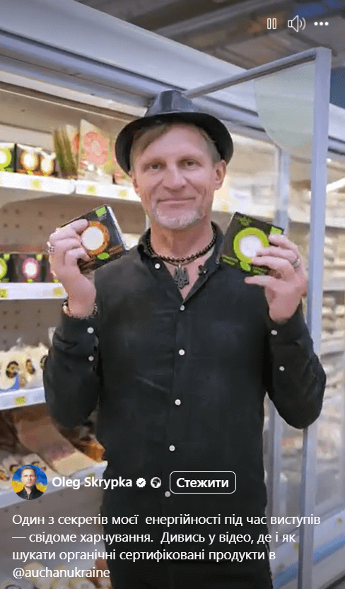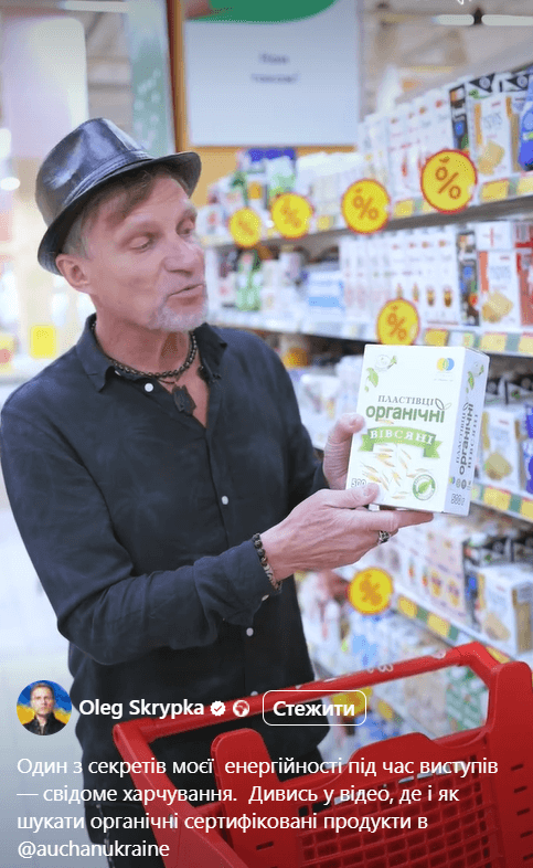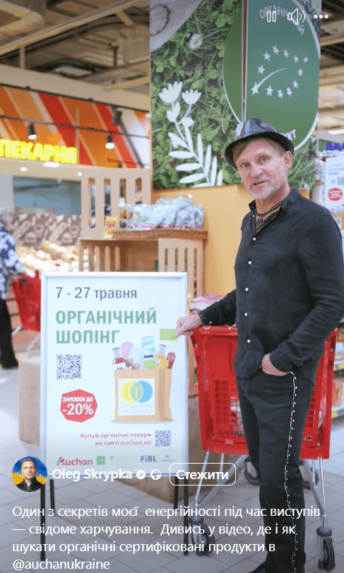 До промокампанії також долучився і відомий український співак Олег Скрипка. Він розповів, як розпізнати органічні продукти за державним логотипом, а також поділився, чому надає перевагу саме органічним продуктам. Переглянути відео з промоакції можна за посиланням.