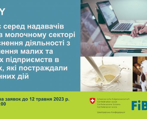 QFTP оголошує конкурс серед надавачів послуг в молочному секторі на здійснення діяльності з відновлення малих та середніх підприємств в регіонах, які постраждали від воєнних дій