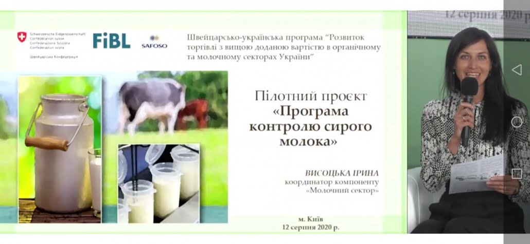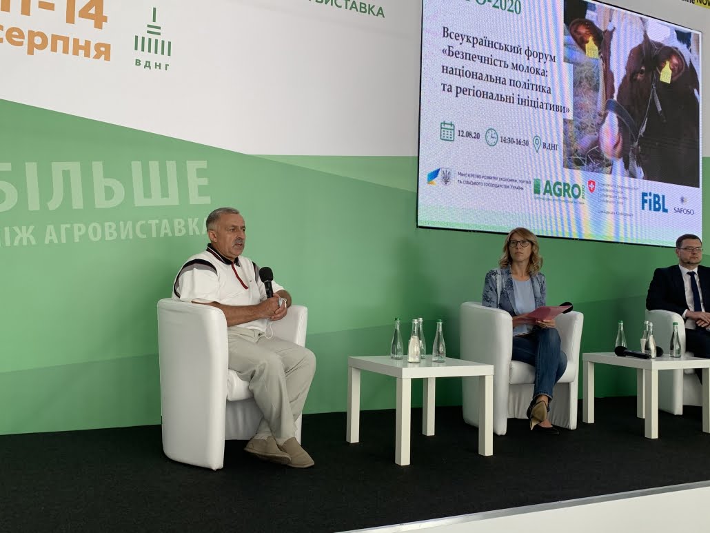 On 12 August, in the frame of 32 International Agroindustrial Fair AGRO 2020, All-Ukrainian Forum Milk Safety: National Policy and Regional Initiatives was held. The event was organized under the patronage of the Ministry for Development of Economy, Trade and Agriculture of Ukraine (MDETAU) in cooperation with the State Service of Ukraine for Food Safety and Consumer Protection (SSUFSCP) and the Swiss-Ukrainian Program “Higher Value Added Trade from the Organic and Dairy Sector in Ukraine” which is implemented by the Research Institute of Organic Agriculture (FiBL, Switzerland) in partnership with SAFOSO AG (Switzerland).