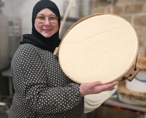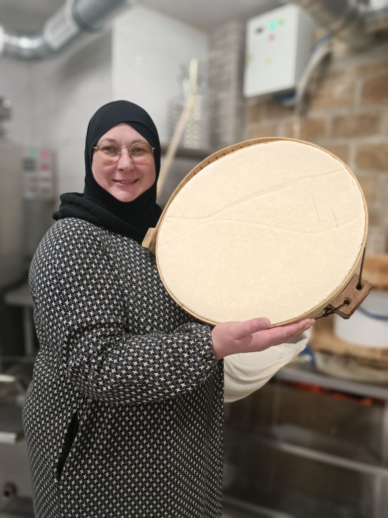 She began her cheesemaking journey as her husband’s assistant, but over time mastered the entire process: learning how to make cheese, sense the milk, and understand the technology. And she hasn’t stopped — she continues learning, experimenting, and seeking her own signature flavors.