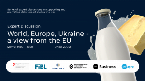 This series of events is conducted by the State Enterprise “Export and Entrepreneurship Promotion Office”, national project Diia.Business and analytical agency INFAGRO with support of Switzerland in the frame of the Swiss-Ukrainian Project “Higher Value Added Trade from the Organic and Dairy Sector in Ukraine” implemented by the Research Institute of Organic Agriculture (FiBL, Switzerland) in partnership with SAFOSO AG (Switzerland).