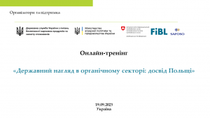 19 вересня 2023 року відбувся онлайн-тренінг на тему «Державний нагляд в органічному секторі: досвід Польщі». У цьому тренінгу, друга частина якого відбудеться 13 жовтня, взяли участь близько 150 фахівці Державної служби України з питань безпечності харчових продуктів і захисту споживачів. Дане навчання було організоване на запит Держпродспоживслужби у співпраці з Міністерством аграрної політики та продовольства України. Тренерами на заході були міжнародні експерти з Інспекції сільського господарства та якості харчових продуктів Польщі, а також незалежні експерти з відповідним досвідом.