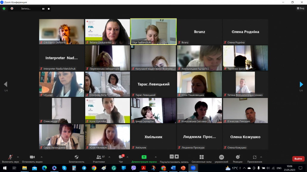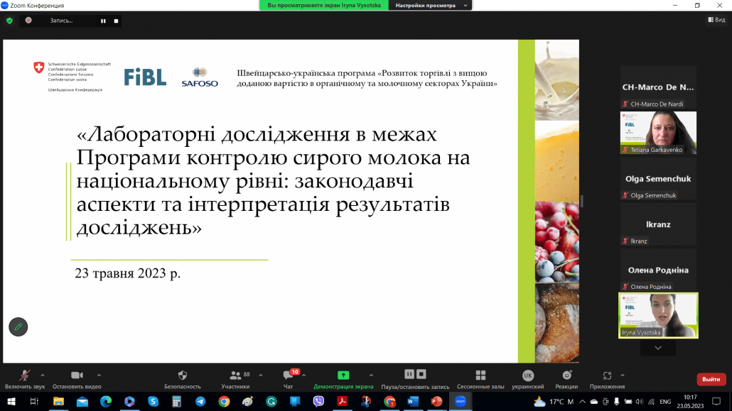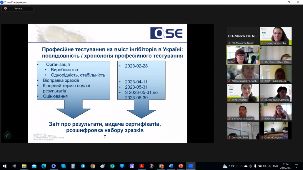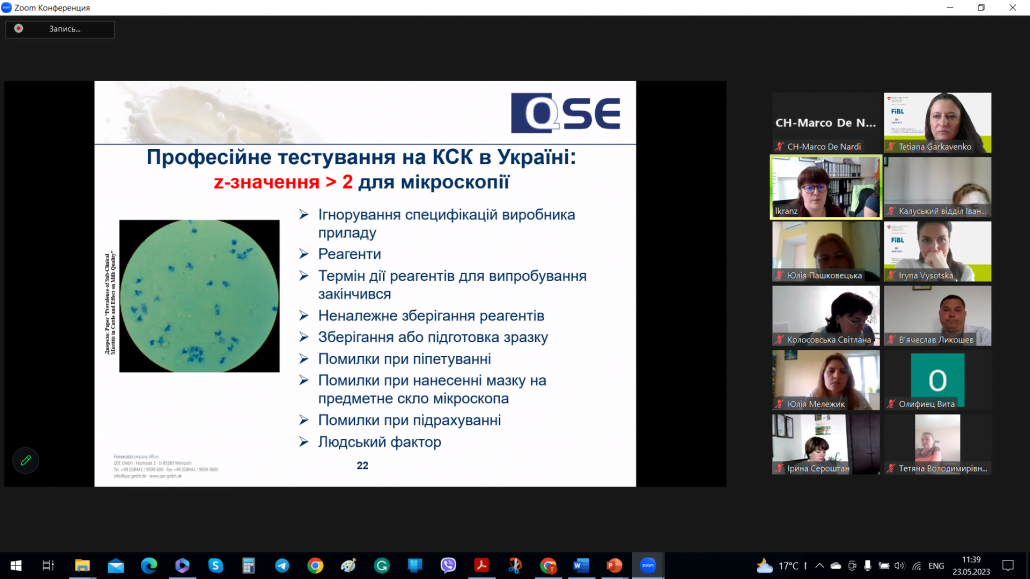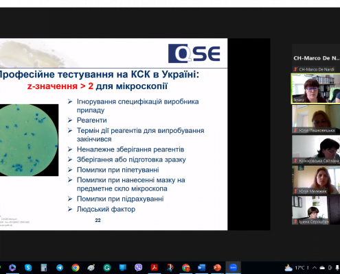 23 травня 2023 р. в онлайн форматі відбувся вебінар для фахівців лабораторій «Участь у міжлабораторних раундах професійного тестування як важлива складова забезпечення якості лабораторних досліджень в межах Програми контролю сирого молока» із залученням міжнародного провайдера QSE GmbH (Німеччина). У заході взяли участь 90 фахівців – більшість з яких представники державних лабораторій Державної служби України з питань безпечності та захисту споживачів регіонального та місцевого рівнів (міжрайонні та районні), а також представники територіальних органів та центрального апарату Держпродспоживслужби.