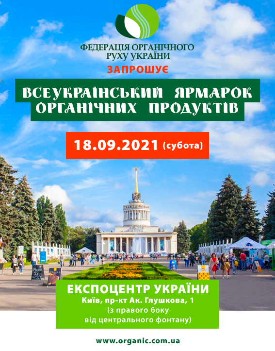 18 вересня 2021 року з 10 до 19 год. Федерацією органічного руху України буде проведений ХІІІ Всеукраїнського Ярмарку органічних продуктів!