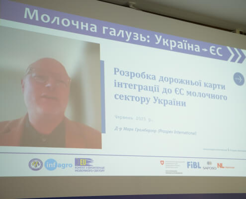 – Швейцарії в межах швейцарсько-української програми «Розвиток торгівлі з вищою доданою вартістю в органічному та молочному секторах України», що впроваджується Дослідним інститутом органічного сільського господарства (FiBL, Швейцарія) у партнерстві із SAFOSO AG (Швейцарія).