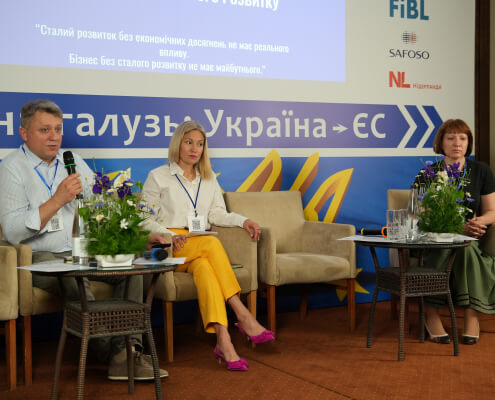 Складну та багатосторонню тему сталого розвитку на етапах виробничого ланцюжку, баланс екологічних цілей та економічної стабільності обговорили учасники панелі Іван Ханас, директор із закупівель та операційної діяльності Данон в Україні, Ганна Лавренюк, генеральний директор АВМ та Артур Пулавскі, аудитор BEFES Audit and Advisory. Ганна Лавренюк надала бачення сталого розвитку на рівні молочної ферми, наголосивши на тому, що сталий розвиток є обʼєднанням трьох складових: економічної, соціальної та екологічної. Іван Ханас поділився напрацюваннями Данон, підкресливши, що сталий розвиток — це фундамент розвитку компанії.