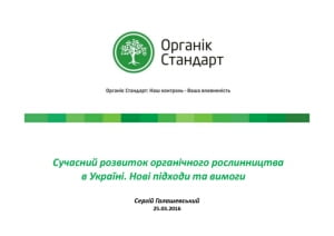 Сергій Галашевський (орган сертифікації Органік Стандарт ) Сучасний розвиток органічного рослинництва в Україні. Нові підходи та вимоги |