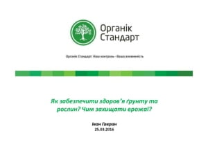 Іван Гавран (орган сертифікації Органік Стандарт ), Як забезпечити здоров'я ірунту та рослин Чим захищати врожаї |