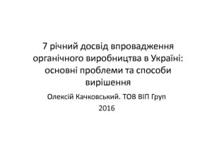 Олексій Качковський (консультаційний орган ВіП Груп ), 7 річний досвід впровадження органічного виробництва в Україні основні проблеми та способи їх вирішення |