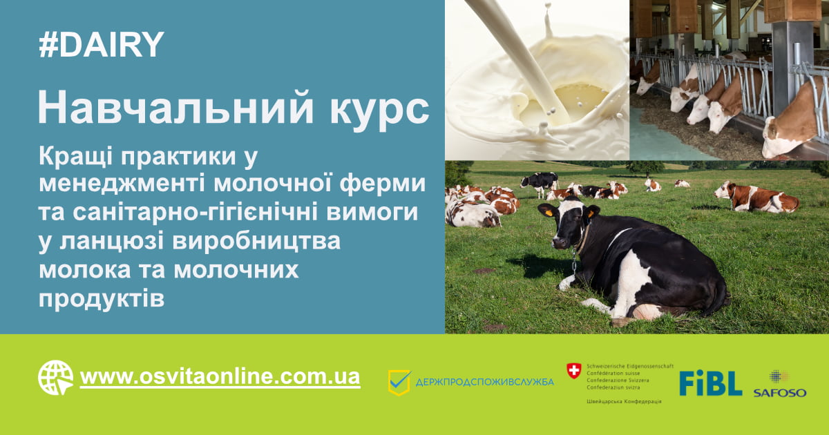 Запрошуємо пройти курс «Кращі практики у менеджменті молочної ферми та санітарно-гігієнічні вимоги у ланцюзі виробництва молока і молочних продуктів» на навчальній платформі Держпродспоживслужби