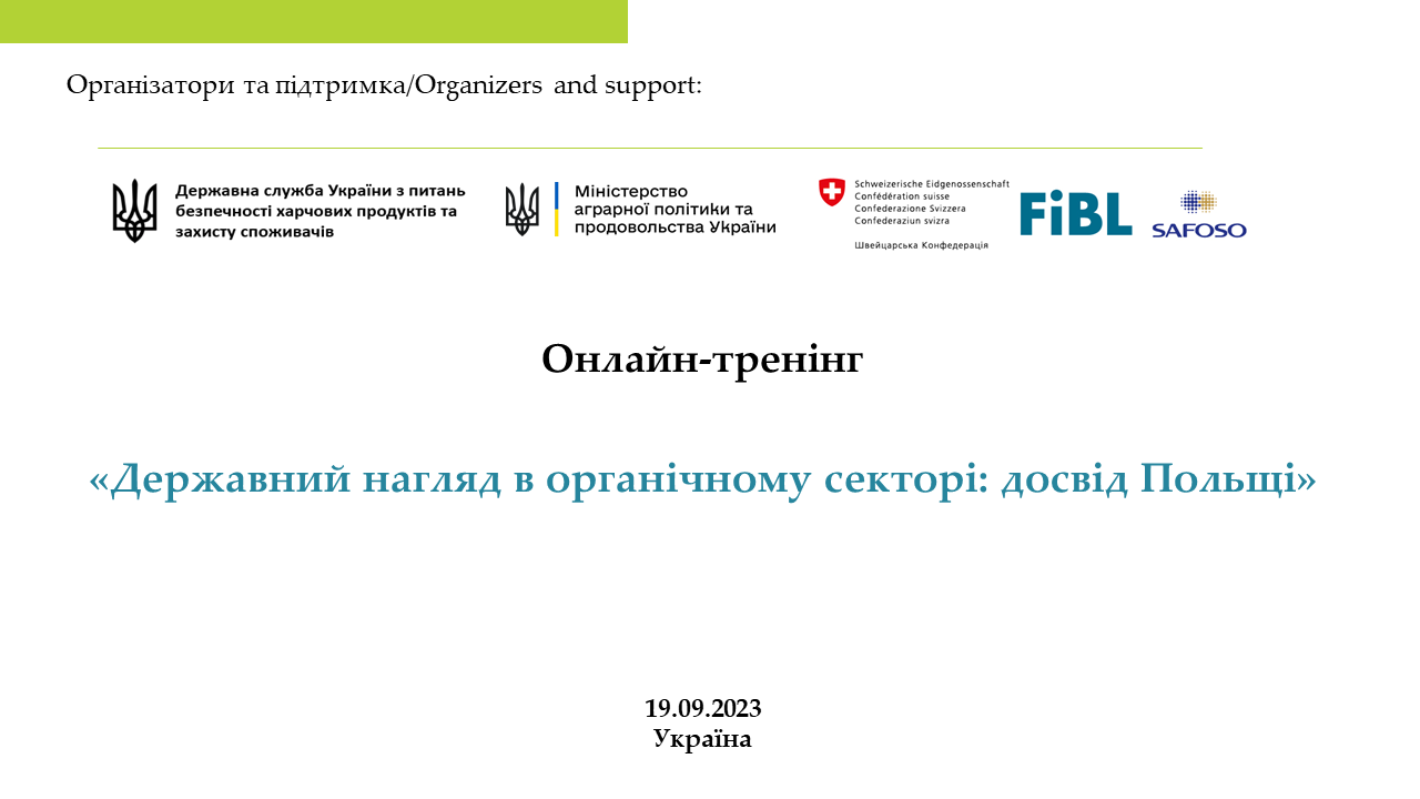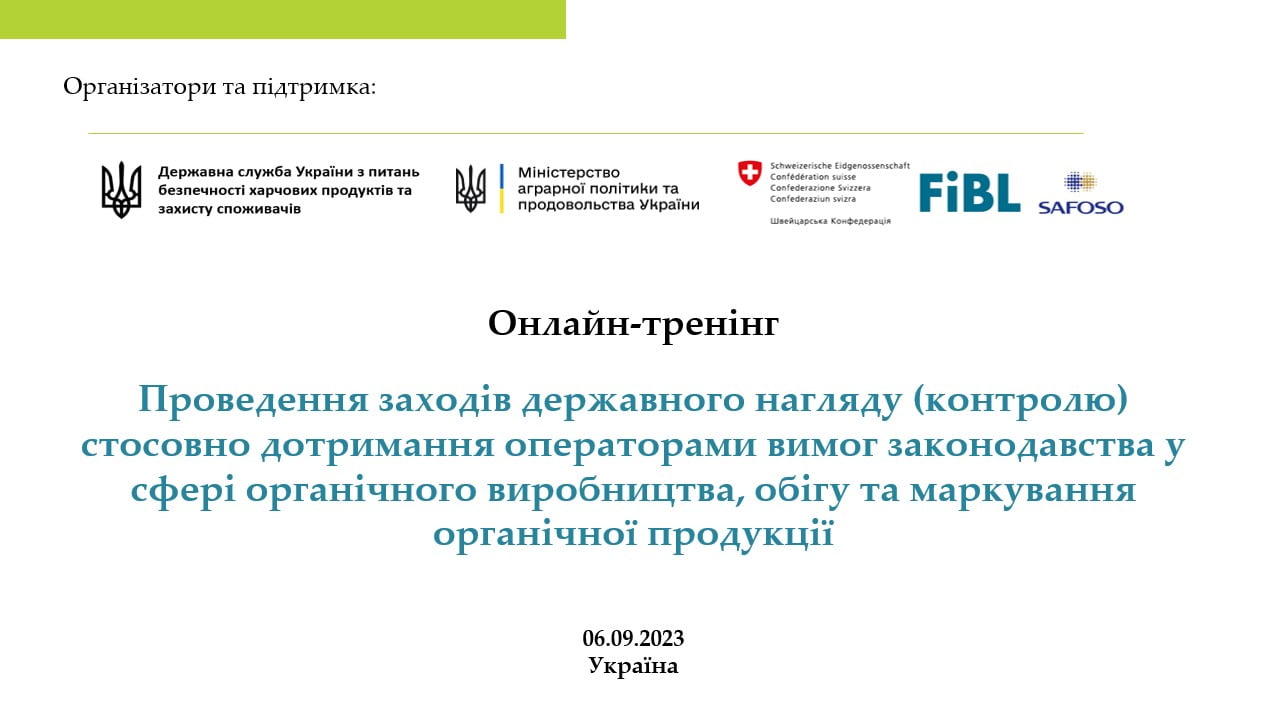 Навчання як важливий крок для реалізації наступного важливого етапу впровадження органічного законодавства України, що стосується державного нагляду у сфері органічного виробництва, обігу та маркування органічної продукції