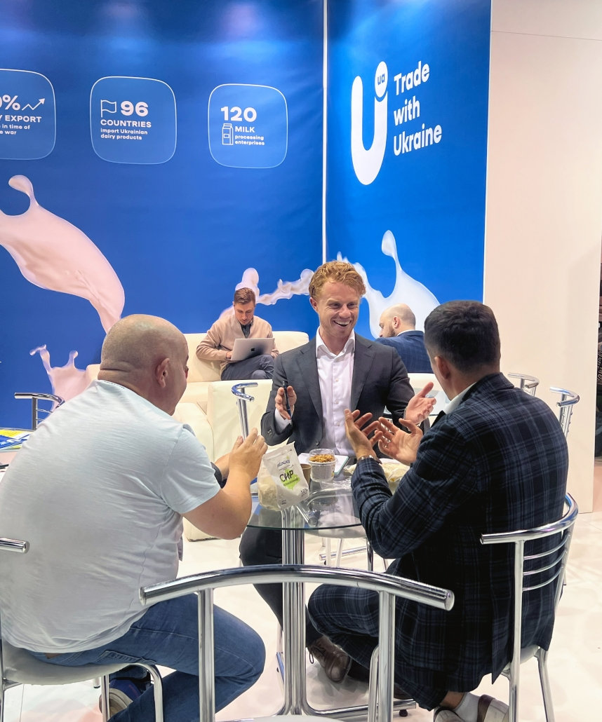 Національний стенд у павільйоні «Молочні продукти» був також «вікном» України для операторів зі всього світу, де представники різних компаній могли не тільки ознайомитись з наявним чудовим асортиментом молочної продукції та поспілкуватися з представниками компаній-експонентів, але й висловити слова підтримки українцям та українському бізнесу. Так, дуже приємно було приймати відвідувачів з Європейської асоціації молочних трейдерів (Eucolait) з ознайомленням та дегустацією українських продуктів. Крім того, всі українські компанії-візитери мали змогу використовувати простір стенду для зустрічей зі своїми міжнародними партнерами.
