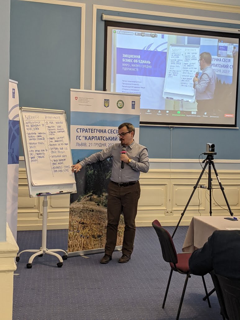 21 грудня 2020 року у Львові, відбулась стратегічна сесія «Розвиток членства та збори Правління ГС «Карпатський смак». Захід відбувався за сприяння проєкту ПРООН Зміцнення бізнес-об’єднань малих і середніх підприємств