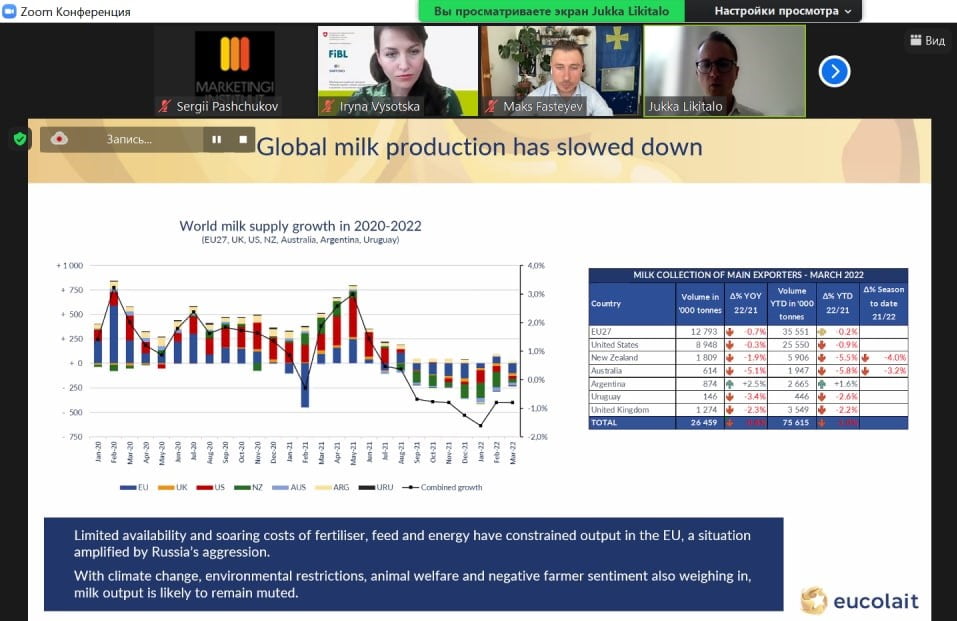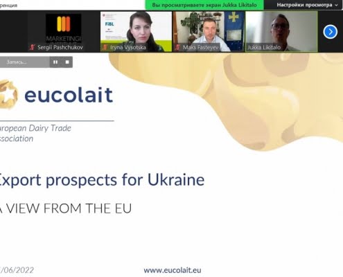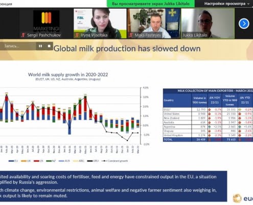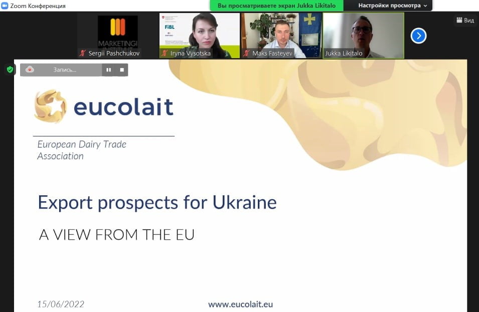 15 червня 2022 року понад 70 представників молочного сектору взяли участь в експертній дискусії з підтримки та просування експорту молочної продукції в умовах війни на ринках ЄС та світу.