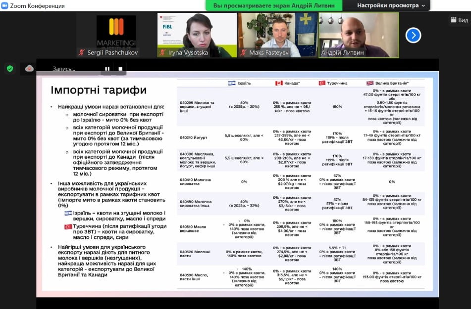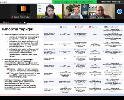 Заступник директора «Офісу з розвитку підприємництва та експорту» Андрій Литвин у своєму виступі зазначив, що ЄС, Канада, Велика Британія — це найперспективніші ринки для експорту. Компанії, які встигнуть вийти на ці ринки, зможуть зайняти свою нішу в цих країнах. Водночас Туреччина не є перспективним ринком, оскільки вона впроваджує високі митні тарифи саме на молочну продукцію, таким чином захищаючи власного виробника.