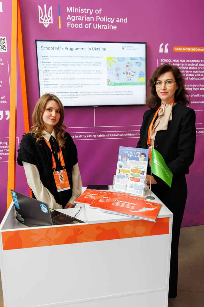 Швейцарсько-українська програма «Розвиток торгівлі з вищою доданою вартістю в органічному та молочному секторах України», що впроваджується Дослідним інститутом органічного сільського господарства (FiBL, Швейцарія) у партнерстві із SAFOSO AG (Швейцарія), надала інформаційну та експертну підтримку Мінагрополітики у підготовці стенду з презентацією проєкту «Шкільне молоко».