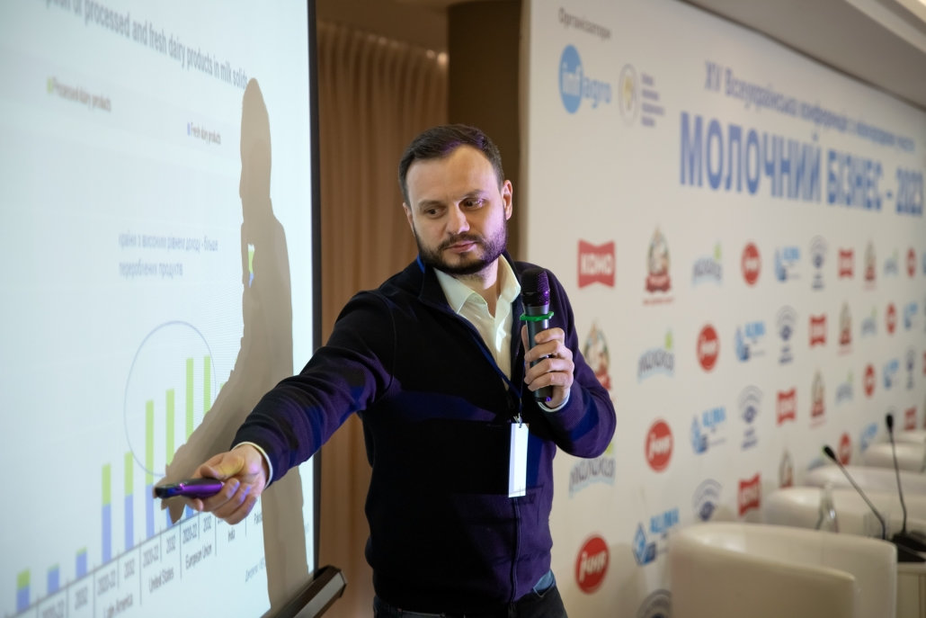 Василь Вінтоняк, директор ІНФАГРО, окреслив загальну картину стану українського молочного експорту, продемонструвавши ті зміни, які відбулися за останній рік. Можливостями розширення експорту та досвідом компаній поділилися з учасниками конференції Олексій Діхтеренко, директор з експорту, КОМО, Михайло Паньків, директор з розвитку міжнародного бізнесу, Молокія, та Валентин Запорощук, голова Наглядової ради Ічнянського молочноконсервного комбінату. В ході обговорення було згадано багато цікавих спостережень – відношення зарубіжних споживачів до української молочної продукції, роль трейдерів в торгівлі, важливість участі компаній у міжнародних виставках та необхідність постійної активної роботи компаній з розширення географії експорту та освоєння перспективних для українських товарів регіонів.