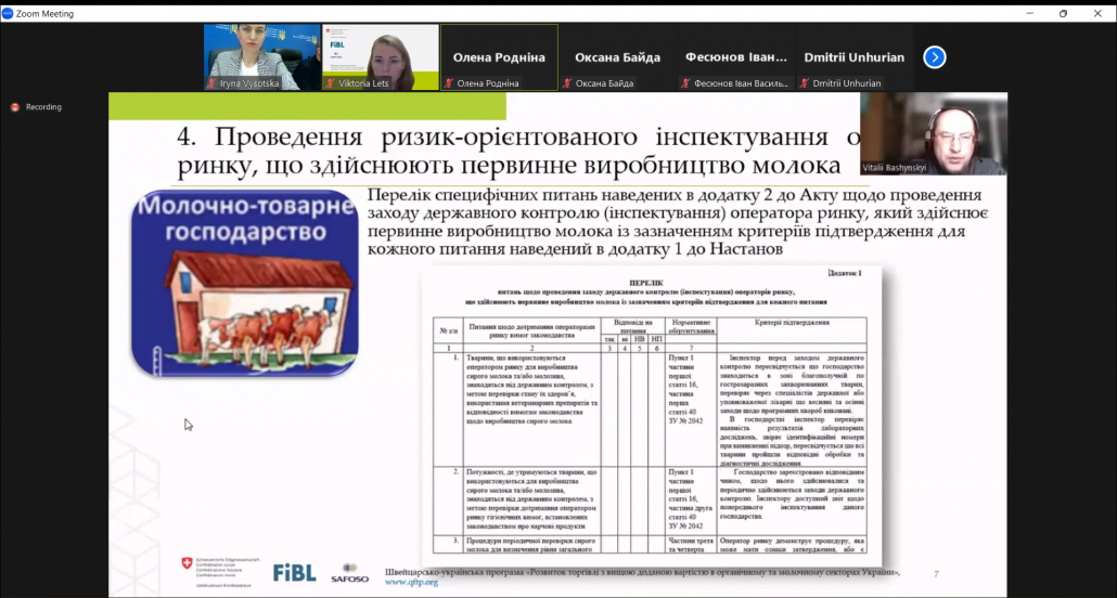 І на завершення тренінгу Віталій Башинський представив стандартну операційну процедуру щодо порядку дій державних інспекторів, державних ветеринарних інспекторів та уповноважених осіб у випадку повідомлень в «Молочному модулі» про невідповідність сирого молока.